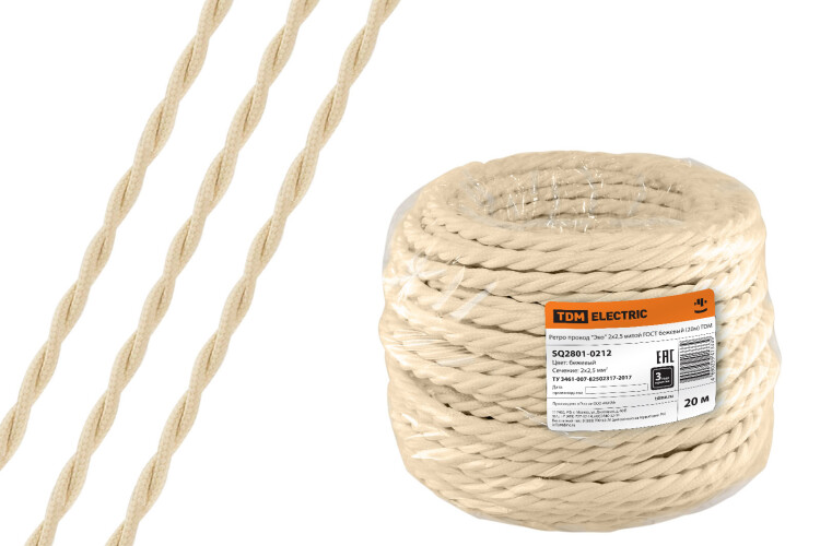 РЕТРО/ЭКО Провод витой 2х2,5 ПВО сосна TDM (20м)