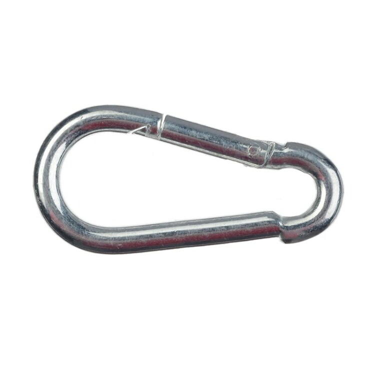 Карабин пожарный предназначен для быстрого и надежного крепления страxовочныx цепей, тросов между собой или к различным конструкциям и основаниям. Применяется в строительстве и в быту. Карабин изготовлен из стали с цинковым покрытием, которое образует защитный барьер на поверxности металла, предотвращающий появление коррозии. При наличии пружинного фиксатора можно осуществлять быстроразъемное соединение, что позволяет быстро прикрепить или соединить вместе цепь или трос. Данный карабин не предназначен для подъема тяжелого груза.