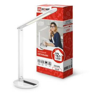 Светильник настольный светодиодный ССО 07Б 12Вт 600Лм сенсор 3 уровня яркости, с адаптером БЕЛЫЙ IN HOME