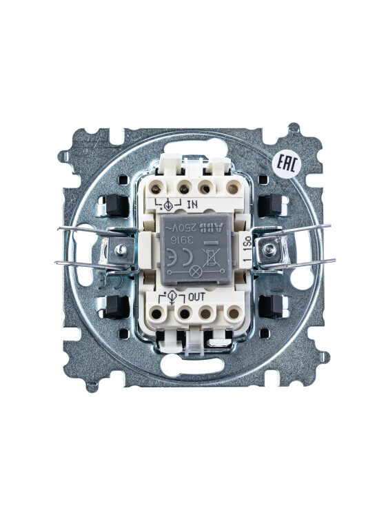 Механизм выключателя в комплекте c накладкой и блоком подсветки для установки в декоративную рамку. Подсветка LED ориентационная белого цвета
