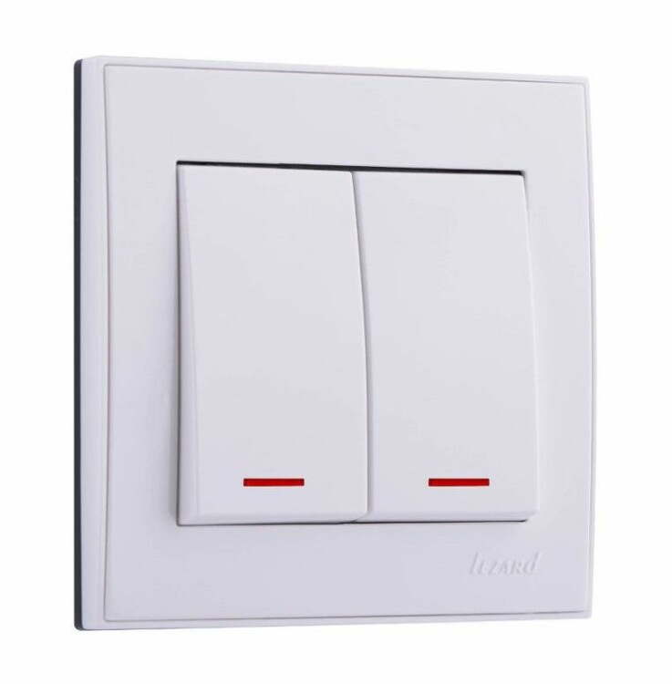 RAIN Выключатель 2-кл. с подсветкой белый LEZARD (10шт/120шт)
