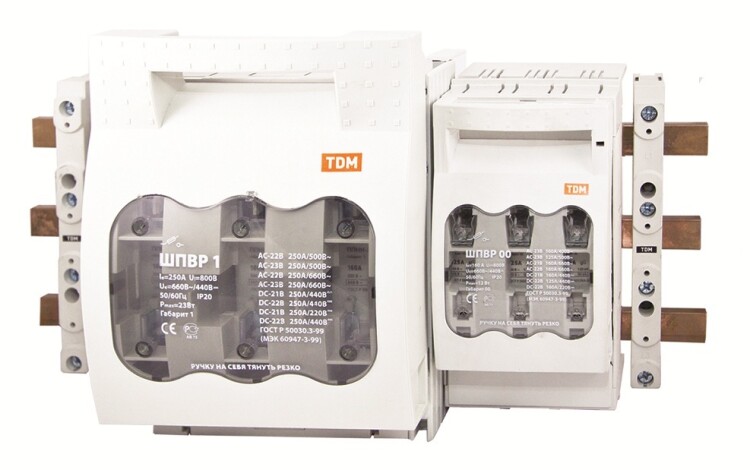 Применение:Шкафы компенсации реактивной мощности с шинной системойВводно-распределительные устройства (ВРУ).Шкафы и ящики управления.Оборудование трансформаторных подстанций. Материалы:Контактная группа ШПВР выполнена из электротехнической меди с гальваническим покрытием, что предотвращает ее окисление в процессе эксплуатации.Корпус выключателя-разъединителя выполнен из негорючего полиамида, армированного стекловолокном (PA-6.6).Преимущества:Одновременное использование медных шин как передающего и крепежного элемента экономит пространство и помогает убрать провода и кабели.При помощи клемм подключения.Возможность крепления на шины толщиной 5 и 10 мм для ШПВР00 и на шины 10 мм для ШПВР1-3.Возможность вывода кабеля как вверх, так и вниз при помощи универсального переходника. Назначение:Защита 3-х фазных электрических цепей переменного тока до 660В и постоянного тока до 440В от коротких замыканий и перегрузок.Включения/отключения нагрузки (с видимым разрывом). Упаковка:Руководство по эксплуатации. ПаспортШПВР 00 3П 160A по 12 шт.ШПВР 1 3П 250A по 4 шт.ШПВР 2 3П 400A по 3 шт.ШПВР 3 3П 630A по 2 шт.