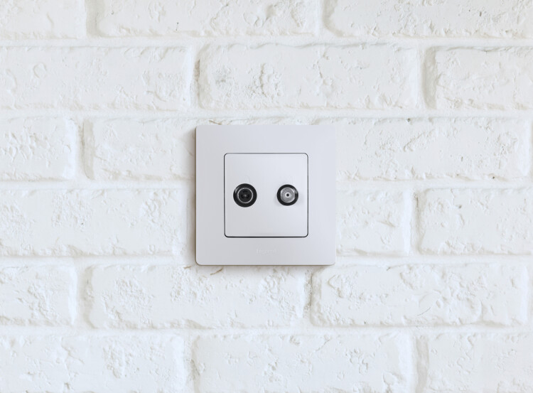 - Присоединение коаксиальных кабелей к розетке осуществляется удобным безвинтовым коннектором.