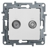 ТВ-Спутниковая розетка двухкабельная Legrand Etika тип "звезда", цвет белый,скрытого монтажа, имеет два независимых входа и выхода для подключения эфирного и спутникового телевидения. Позволяет добавить подключение спутникового ТВ без изменения существующей структуры эфирного ТВ, простой заменой розетки