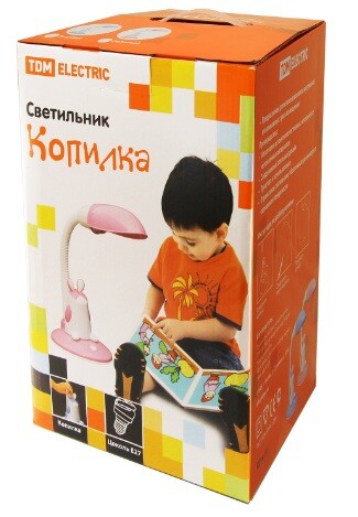 Материалы:Негорючие и нетоксичные материалы Преимущества:Комфортный мягкий свет, отсутствие негативного влияния на глаза человека (в моделях с люминесцентной лампой).Красочная расцветка и оригинальный дизайн светильника.Отражатель светильника обеспечивает равномерное освещение поверхности.Отсутствие нагрева светильника.Лампа в комплекте (в зависимости от модели светильника).Возможность использования светильников Детской серии Бегемотик, Поросенок в качестве ночника.Часы на корпусе светильника.Назначение:Предназначены для детей школьного или дошкольного возраста. Упаковка:Коробка из картона Конструкция:Устойчивая площадка для размещения светильника на поверхность стола.