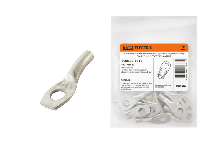 Наконечник медный луженый ТМЛ 2,5-6-2,6 ГОСТ 7386-80 TDM