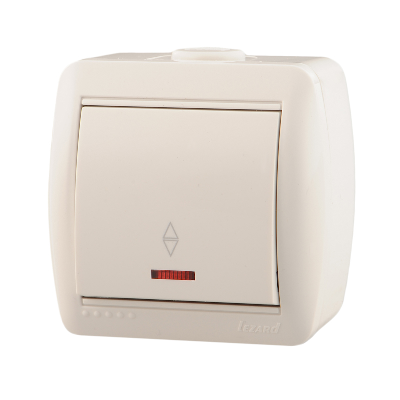 NATA Выключатель 1-кл. проходной с подсветкой белый LEZARD (10шт/120шт)