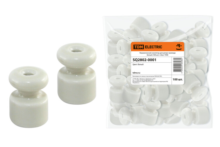 ЭКО Изолятор опорный для ретро-провода керамика белый TDM (100/1000шт)