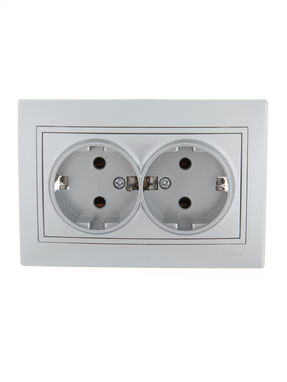 MIRA Розетка 2-ая с/з керамика металлик серый со вставкой LEZARD (10шт/120шт)