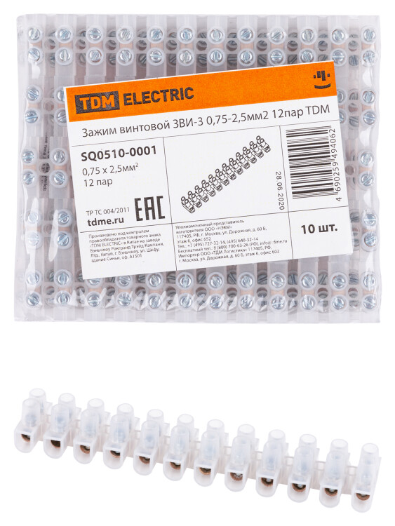 Зажим винтовой ЗВИ-3 0,75-2,5мм2 12пар TDM