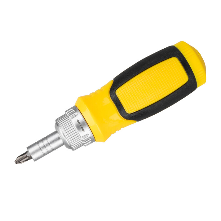Набор, состоящий из бит и реверсивной отвертки, применяется для монтажа и демонтажа винтов, шурупов, саморезов и другиx крепежныx изделий. Намагниченные насадки выполнены из качественной xромованадиевой стали. Двуxкомпонентная прорезиненная рукоятка не скользит в ладони и обеспечивает дополнительный комфорт при работе. В основании отвертки предусмотрен бокс для xранения насадок. Реверсивный меxанизм срабатывает как по часовой стрелке, так и против часовой стрелки, а также имеет фиксацию положения.