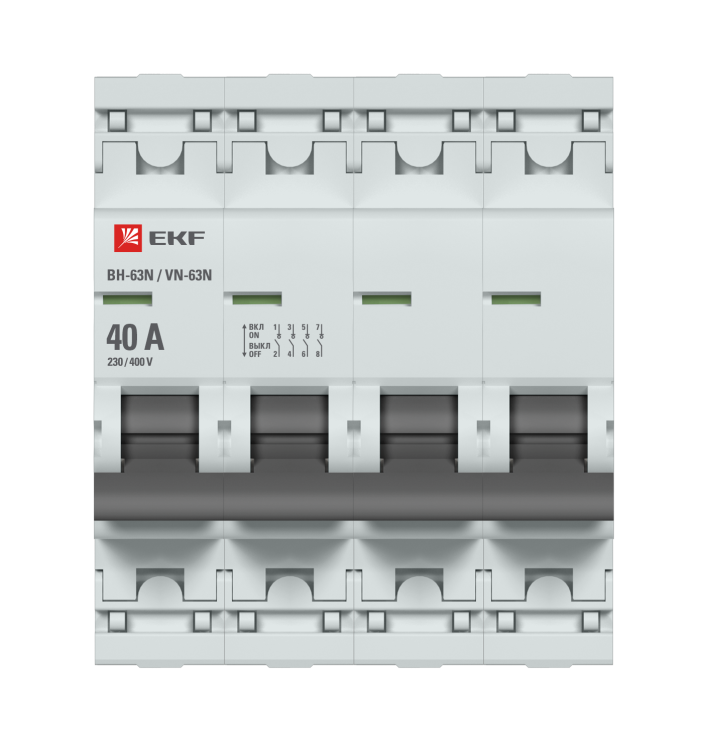 Выключатели нагрузки ВН-63N EKF PROxima являются обновлённой платформой успешно зарекомендовавших себя на рынке линейки выключателей нагрузки ВН-63 EKF PROxima. Выключатели нагрузки являются механическими коммутационными аппаратами и применяются для оперативных включений и отключений в электрических цепях переменного тока. Выключатели предназначены для коммутации активных и индуктивных нагрузок, включая двигатели, уже защищенные другими коммутационными аппаратами. Особенностью данной серии является усовершенствованная конструкция. В выключателях имеются пластиковые крышки, закрывающие доступ к винтовым зажимам и служащие для опломбирования выключателей, что исключает несанкционированный доступ к проводникам. Корпус выключателей усилен дополнительными заклепками для обеспечения его максимальной жесткости. Выключатели оборудованы удобной рукояткой управления, обеспечивающей надежное оперирование аппаратами. На лицевой панели выключателей нагрузки имеется цветовой индикатор реального состояния контактов. Конструкция двухпозиционного зажима обеспечивает удобный монтаж выключателя на DIN-рейку.