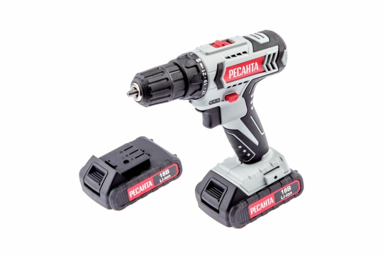 Дрель-шуруповерт аккумуляторная ДА-18-2ЛК, 50Нм, акк.Li-ion18В, 2Ач -2 шт, кейс, Ресанта 75/14/5