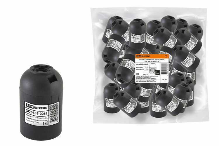 Патрон Е27 подвесной, термостойкий пластик, черный, TDM