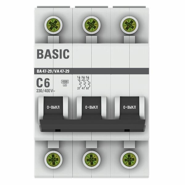 Автоматический выключатель 3P 6А (C) 4,5кА ВА 47-29 Basic