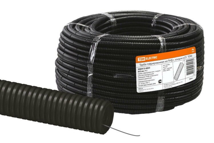 Материалы:Полиэтилен низкого давления (ПНД)Протяжка стальная проволока класса 2 диаметром 0,9 мм Преимущества:Материал - композиция ПНД- позволяет проводить электромонтажные работы в широком диапазоне температур от -45С до +90С без потерь механических и изоляционных свойств.Трубы из ПНД имеют высокие прочностные характеристики, которые позволяют использовать их при прокладке как в бетоне, так и в грунте. При этом гофротруба из ПНД обладает высокой гибкостью и пластичностью.Наличие зонда обеспечивает удобство протяжки кабеля и провода.Назначение:Предназначены для прокладки кабеля при монтаже проводки скрытым/открытым способом в стенах (по стенам), потолках, в полах и т.д. 0: Материалы:Полиэтилен низкого давления (ПНД)Протяжка стальная проволока класса 2 диаметром 0,9 мм