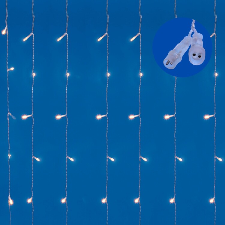 ULD-C2030-240/TTK WARMWHITE-WHITE IP44 Занавес светодиодный с эффектом мерцания, 3х2м. Соединяемый. 240 светодиодов. Теплый белый и белый свет. Провод прозрачный. TM Uniel.
