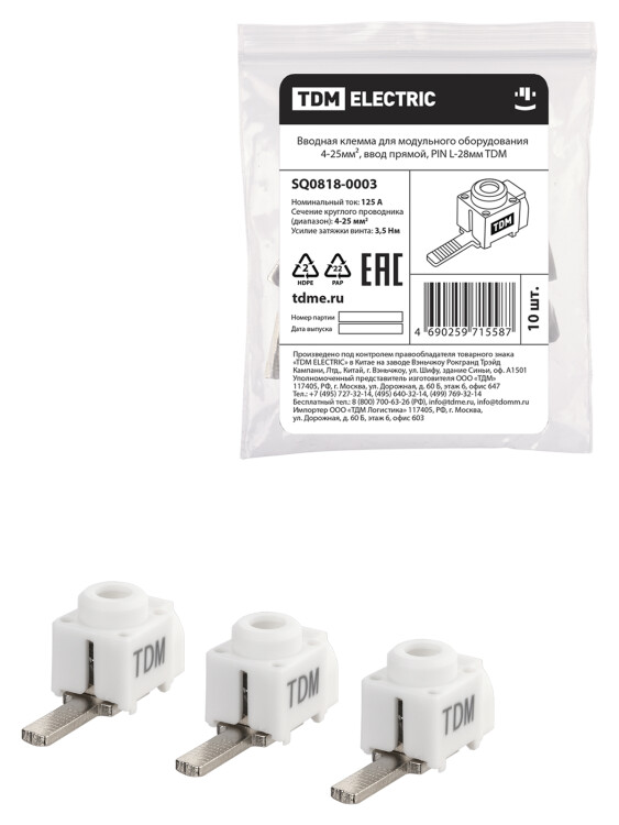 Групповая упаковка вводной клеммы для модульного оборудования SQ0818-0001 по 100 шт.