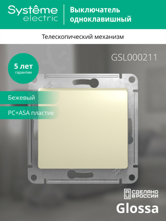 GLOSSA Выключатель 1-кл. бежевый SYSTEME ELECTRIC