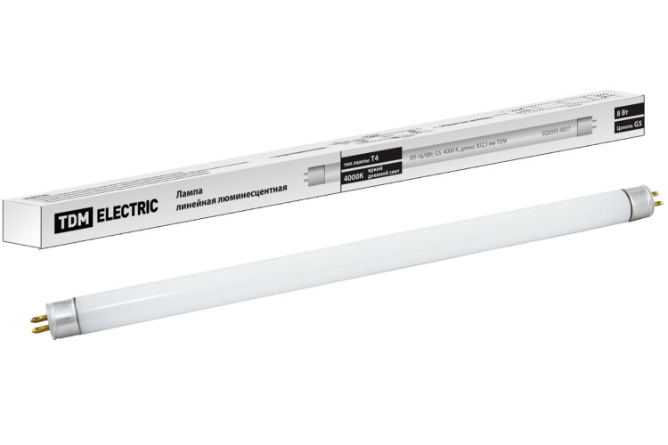 Люминесцентная лампа Т5 ЛЛ-16 8 Вт G5 220В 4000К 302,5 мм TDM (25/100шт)