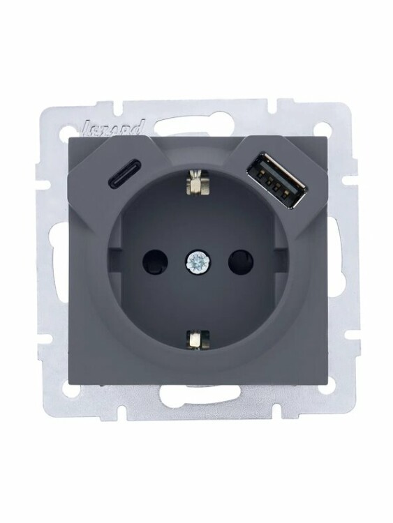 VESNA Розетка с/з TC+USB разъём графит LEZARD (10шт/120шт)