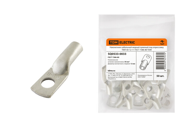 Наконечник медный луженый ТМЛ 50-12-11 ГОСТ 7386-80 TDM