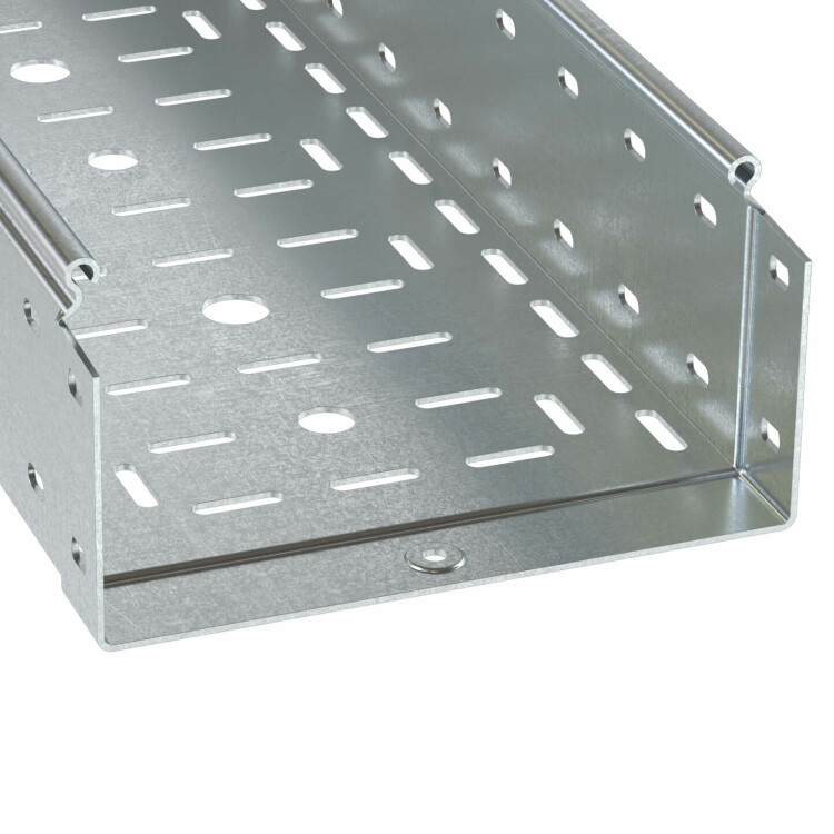 Перфорированные листовые лотки ДКС применяются для прокладки кабеля как в помещении, так и на открытом воздухе. Лотки отличаются высокой несущей способностью – подформовка, производимая при производстве этой продукции, создает дополнительное ребро жесткости, что увеличивает несущую способность системы до 54%. Перфорация сокращает вес конструкции. В лотках имеются отверстия для отвода кабеля. Степень пыле- и влагозащиты перфорированных лотков – IP 10 при использовании крышек, входящих в состав системы. Метод соединения "мама-папа" применяемый для системы, существенно сокращает время монтажа и создает непрерывный контур. Конструктив листовых лотков ДКС предупреждает повреждение кабеля при прокладке.