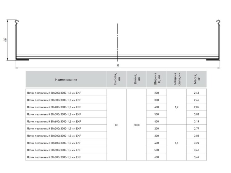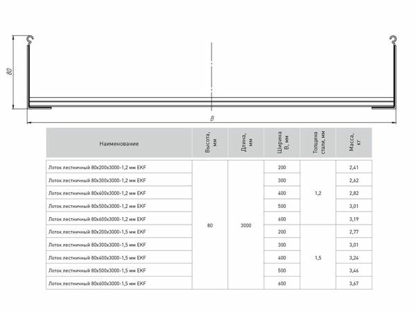 Лоток лестничный 80х400х3000-1,2 мм EKF