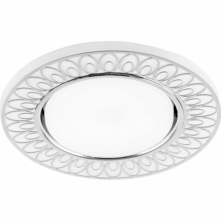 Светильник потолочный встраиваемый (ФВО) FERON CD9913, под лампу с LED подсветкой 20LED*2835 SMD 4000K, GX53 GX53, белый матовый хром, круг, 125*125*25 мм, монтажный диаметр 80мм, корпус полимер, неповоротный