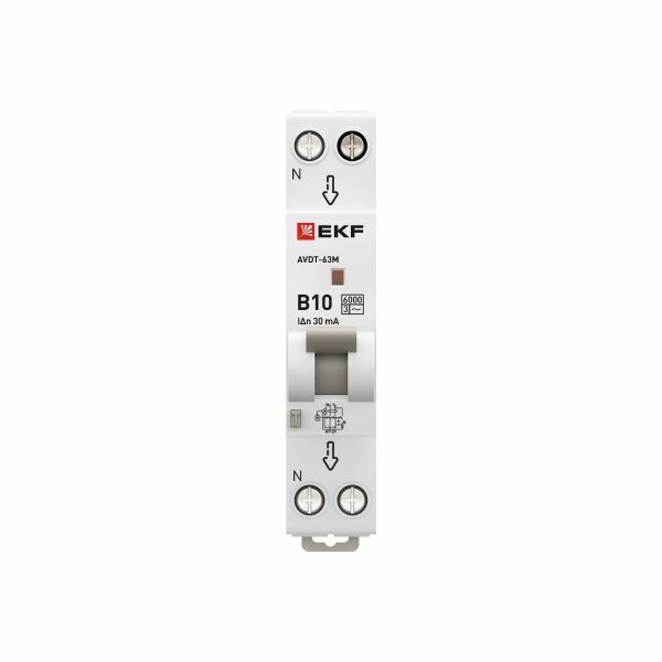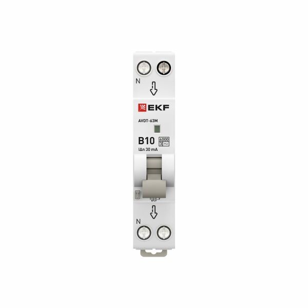 Диф. автомат 10А 30мА 1мод. х-ка В эл. тип AС 6кА АВДТ-63М EKF