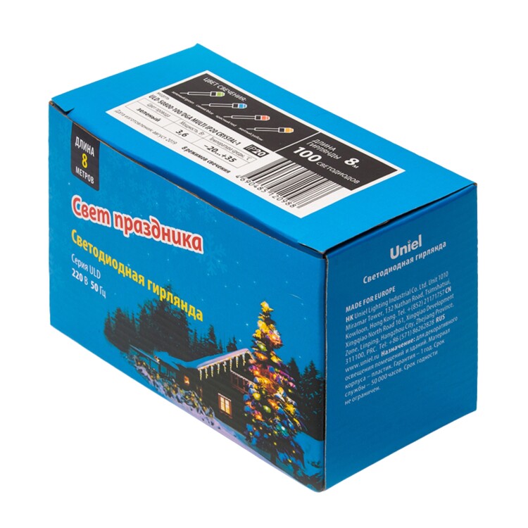 ULD-S0800-100/DGA MULTI IP20 CRYSTAL-1Гирлянда светодиодная с контроллером «Кристал-1», 8м. 100 светодиодов. Разноцветный свет. Провод зеленый. ТМ Uniel