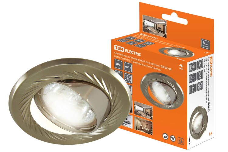 Светильник встраиваемый поворотный СВ 02-02 MR16 50Вт G5.3 матовый никель/никель TDM