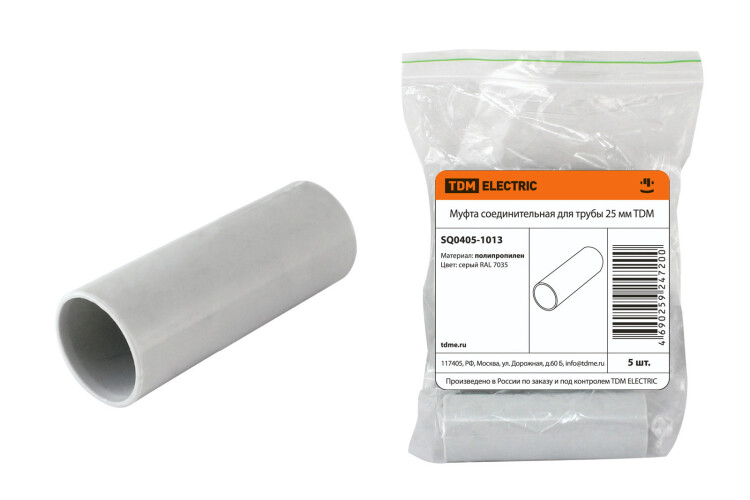 "TDM" Муфта соед. для пласт. трубы серая IP40 d25мм 5шт/уп