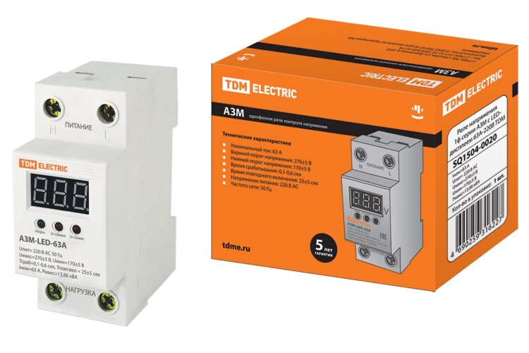 Применение:Защита однофазного электрооборудования от повышенного и пониженного напряжения сети. Материалы:Корпус из негорючего самозатухающего пластика.Преимущества:Реле АЗМ 2019 года выпуска по сравнению со старой версией имеют уменьшенные размеры (2 модуля-36 мм).Самое доступное однофазное реле контроля напряжения на рынке.АЗМ-LED - имеет дисплей, отображающий текущее напряжение сети.АЗМ-LED - прямое подключение нагрузки до 63А.Реле АЗМ-1М имеет самые компактные размеры на рынке, позволяющие экономить место в щитке (1 модуль-18 мм). Назначение:Для контроля уровня напряжения в однофазных сетях переменного тока 220 В 50 Гц и отключения нагрузки в случае падения скачков напряжения электросети. 0: