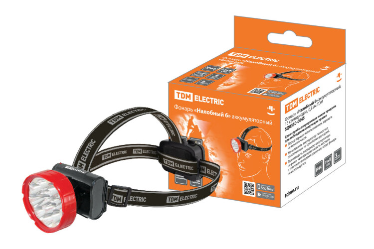 Фонарь " Налобный 6" аккумуляторный, 15 светодиодов, 0,8 Ач TDM