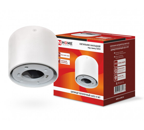 Светильник накладной ЦИЛИНДР ПОТОЛОЧНЫЙ-GX53-П WT пластик под лампу GX53 230B белый IP20 IN HOME