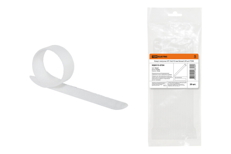 Хомут-липучка ХЛ 16х310 мм белый (20 шт) TDM