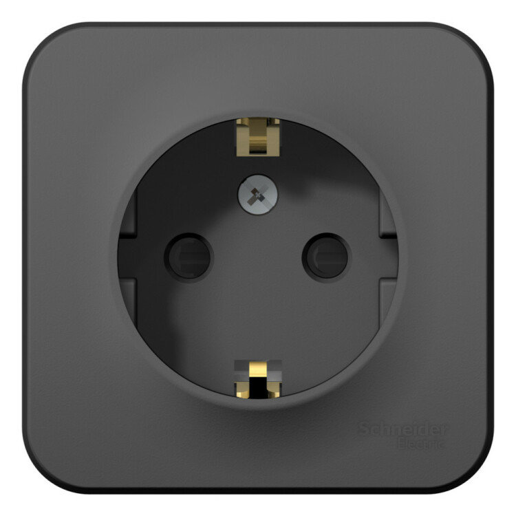 Розетка Systeme Electric (ранее Schneider Electric) BLANCA (антрацит, открытой установки) одноместная, с заземлением, шторками предназначена для сетей до 250В, на ток до 16А. Шторки открываются только при одновременном равномерном давлении в оба отверстия и препятствуют проникновению посторонних предметов. Они обеспечат дополнительную безопасность в доме, где есть дети. Корпус изделия выполнен из ABS-пластика.