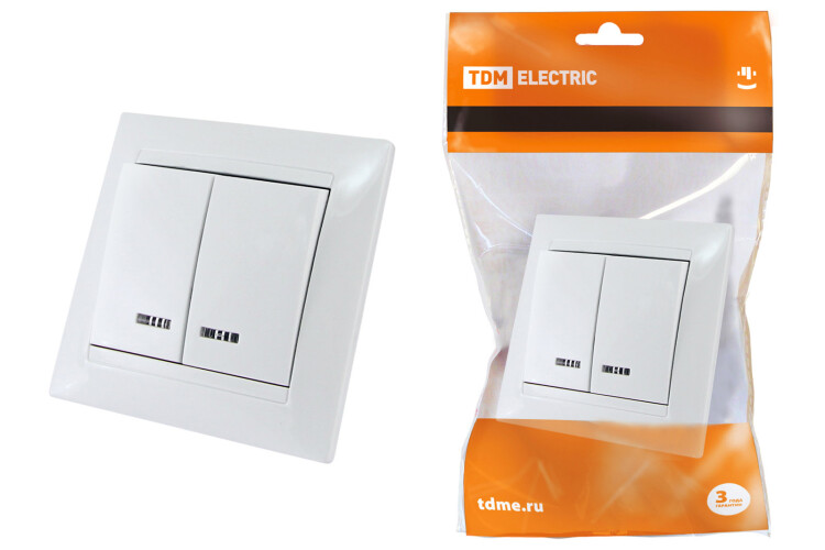 ЛАМА Выключатель 2-кл. c подсветкой 10А белый TDM (10/120шт)