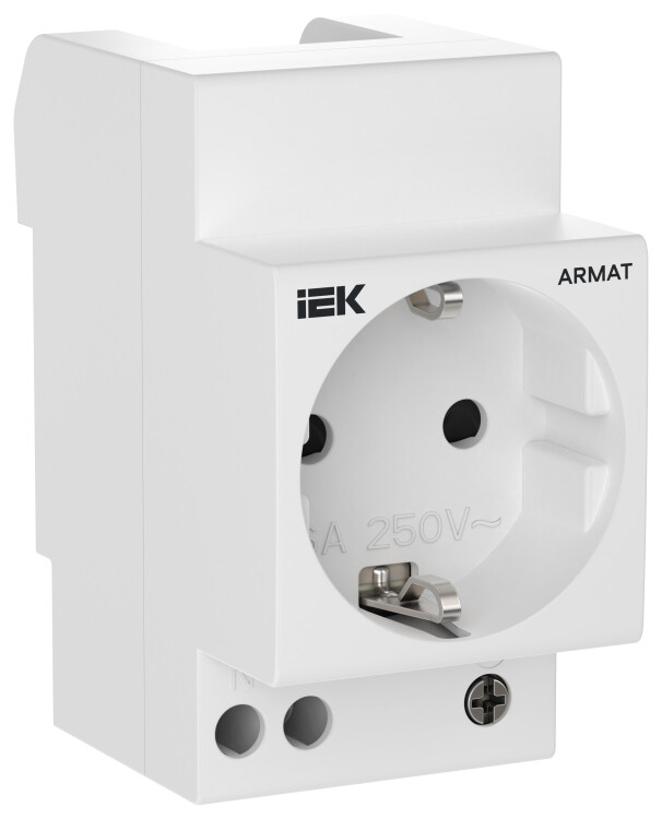 Розетка на DIN-рейку серии ARMAT п редназначена для применения в сетях переменного тока напряжением до 250 В и служит для подключения переносных светильников, электроинструмента малой мощности, блоков питания и другого оборудования.