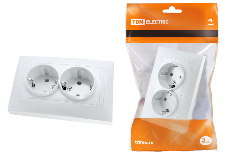 ЛАМА Розетка 2-ая с/з с з/ш 16А белый TDM (6/72шт)