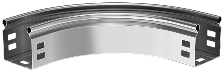 Поворот на 90° плавный предназначен для организации горизонтального поворота кабельной трассы на 90°. Крышка аксессуара в комплект не входит. Аксессуар изготовлен из стали горячего цинкования методом Сендзимира (защитный слой цинка не менее 10 мкм).