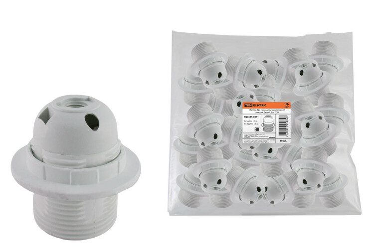 Патрон Е27 с кольцом, термостойкий пластик, белый, Б/Н TDM