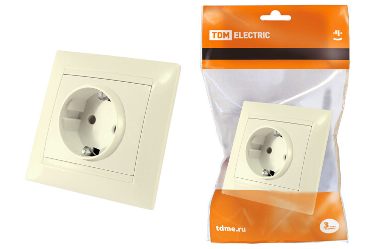 ЛАМА Розетка 1-ая с/з с з/ш 16А слоновая кость TDM (10/120шт)