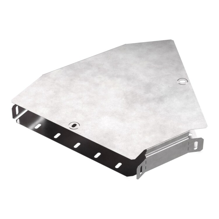 Аксессуары изготовленные из стали с защитным покрытием по методу Сендзимира – это изделия, на которых защитное цинковое покрытие было нанесено на листовую сталь перед изготовлением. Толщина защитного покрытия варьируется от 10 до 22мкм. Климатическое исполнение изделий УХЛ2, что предусматривают эксплуатацию в помещении и под навесом, при температуре эксплуатации от -80 до +150°С. Угол горизонтальный 45 градусов предназначен для поворота кабельных трасс в горизонтальном направлении на 45 градусов, для перфорированных и глухих лотков. В комплект входит крышка.