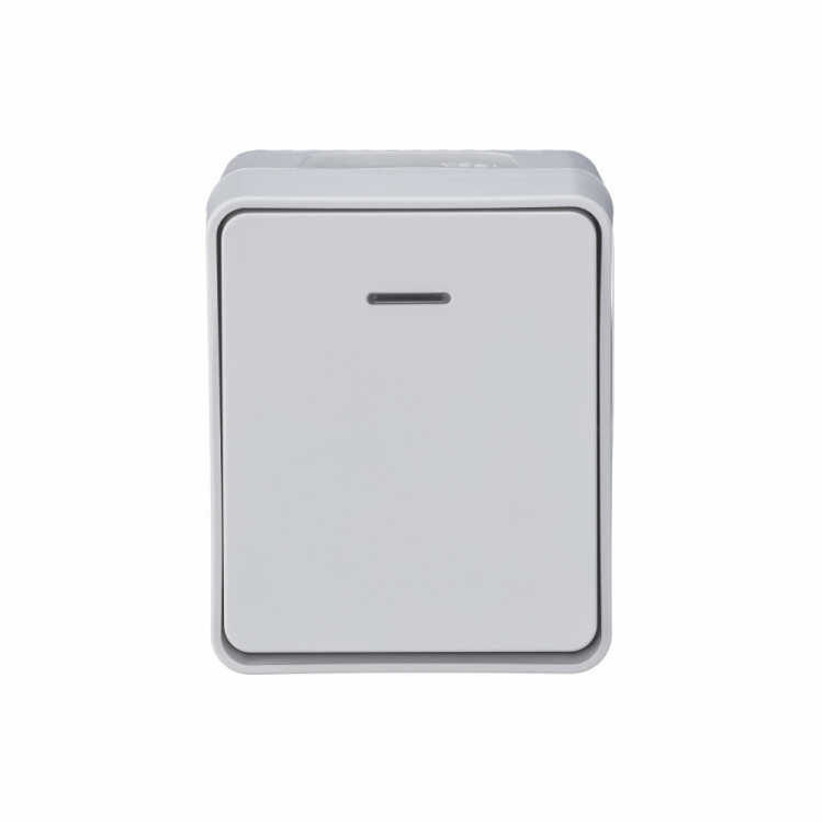 Выключатель 1-клавишный с подсветкой для открытого монтажа.