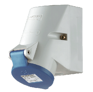 16A, 3п, 6ч, 230B, 50-60Гц. Розетка настенная, безвинтовая технология TwinCONTACT, 2 ввода М20 - 1 сверху и 1 (для прорезания) снизу, сечение кабеля 1,5-4 кв.мм, проходные клеммы, внутреннее крепление, светло-серая с синей крышкой, IP44.