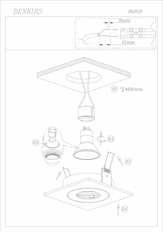 DENKIRS DK2021-BK Встраиваемый светильник, IP 20, 50 Вт, GU10, черный, алюминий Материал арматуры алюминий, Степень защиты ip 20, Тип лампы галогеновая или LED, Тип цоколя GU10, Мощность лампы 50, Мощность общая 50, Напряжение 220 , Площадь освещения 1,5, Пульт управления нет, Датчик движения Нет, подходит для натяжных потолков да, гарантия 3 года