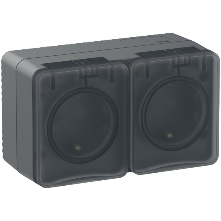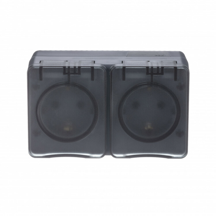 Розетка двойная с заземлением со шторками для открытого монтажа, 16А, 250В.