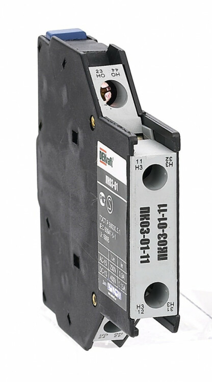 Приставка контактная серии ПК-03-01 для контакторов КМ-103 DEKraft; кол-во контактов - 1НО+1НЗ; ном.ток 10 А; ном.напряжение до 690 В; установка с лицевой стороны; степень защиты IP20. Приставки контактные предназначены для увеличения количества вспомогательных контактов контактора. Приставки боковой установки ПК-03-01 являются эксклюзивом и позволяют значительно сэкономить на глубине шкафа, который будет стоить дешевле.